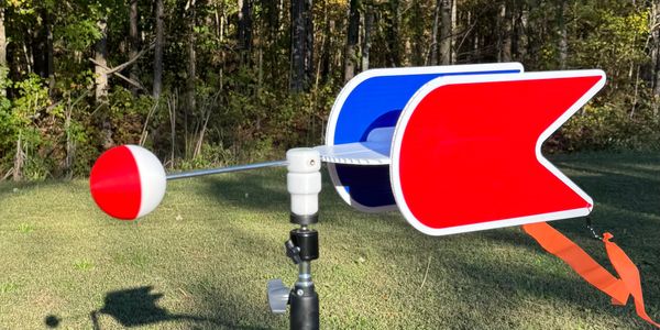 Magnetic-Fin wind indicator featuring dual ball bearings, bubble level, and vibrant visibility fins. Ready to use right out of the box.